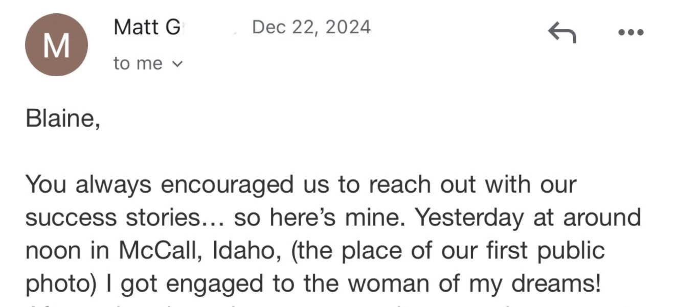 My name is Blaine Anderson, and I'm a professional matchmaker and dating coach. I've helped >7,000 happy clients find love since starting Dating By Blaine in 2020!