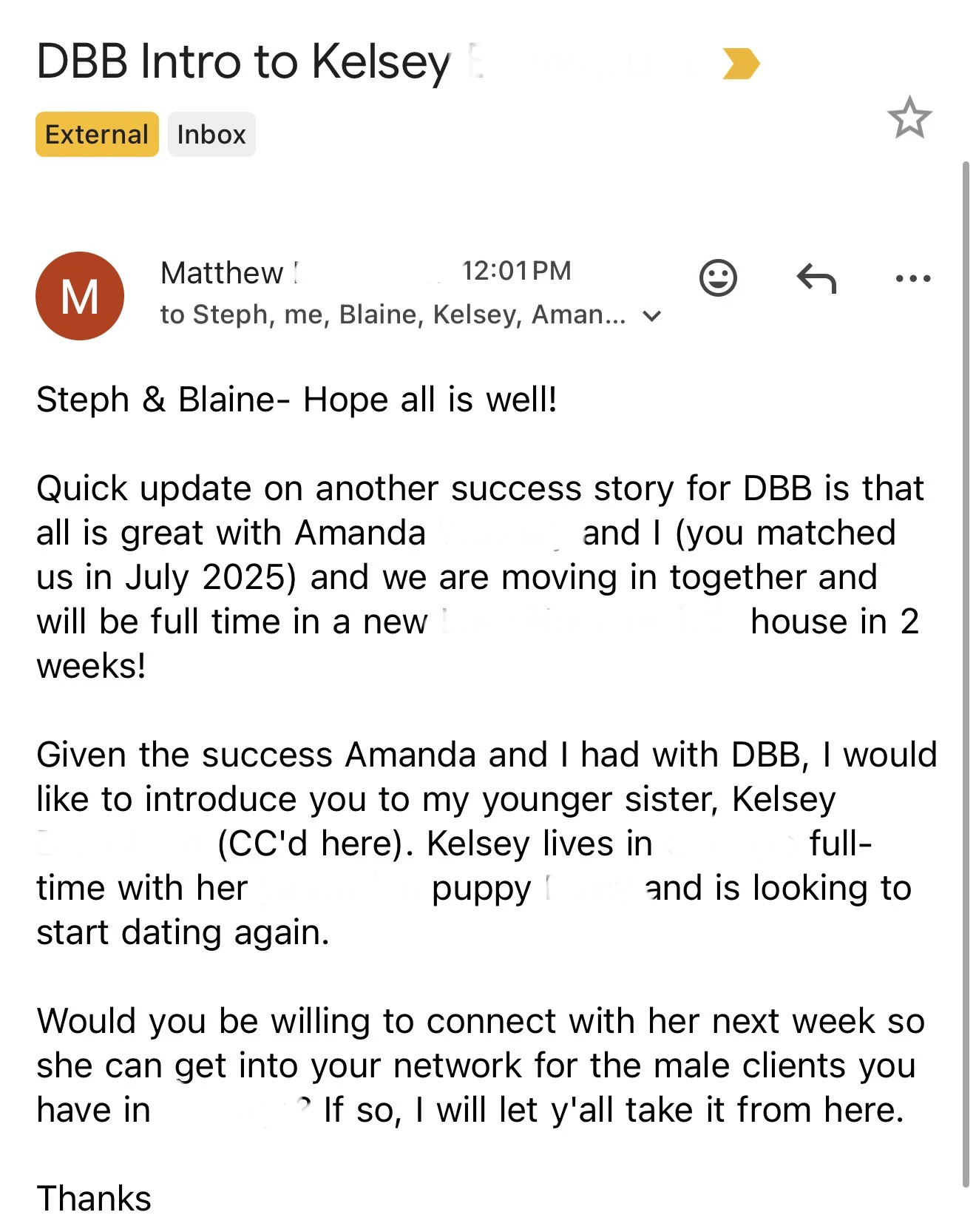 My name is Blaine Anderson, and I've helped >7,000 happy matchmaking and coaching clients find love since starting Dating By Blaine in 2020.